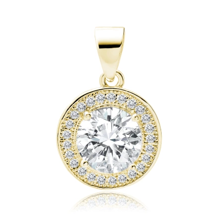 Srebrna pozłacana zawieszka pr.925 okrągła z białą cyrkonią