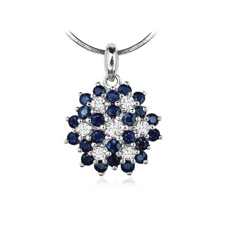 Dostępny na zamówienie, czas realizacji ok. 4 tygodnie Staviori Wisiorek. 7 Diamentów, szlif brylantowy, masa 0,04 ct., barwa H, czystość I1. 22 Szafiry, masa 1,10 ct.. Białe Złoto 0,585. Średnica 13 mm. Długość 20 mm.