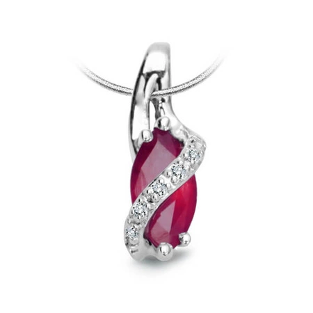Dostępne Staviori Wisiorek. 5 Diamentów, szlif brylantowy, masa 0,03 ct., barwa H, czystość I1. 1 Rubin, masa 0,70 ct.. Białe Złoto 0,585. Wymiary 4x10 mm. Grubość 4 mm.