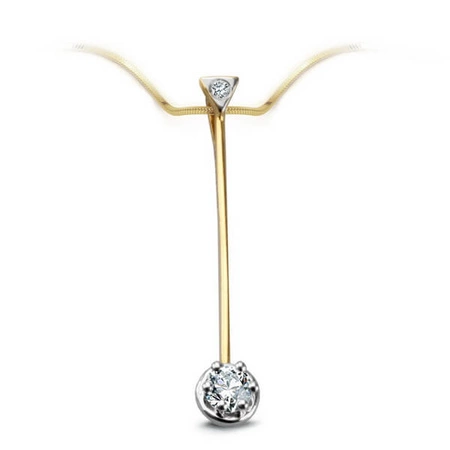 Dostępny na zamówienie, czas realizacji ok. 2 tygodnie Staviori Wisiorek. 2 Diamenty, szlif brylantowy, masa 0,13 ct., barwa H, czystość SI2. Żółte Złoto 0,585. Wymiary 4x26 mm. Grubość 4 mm.