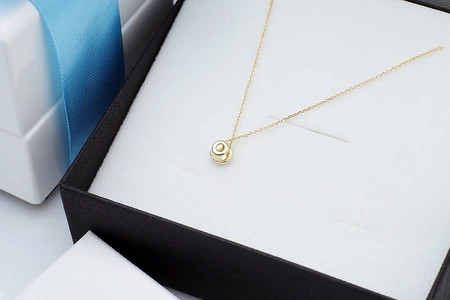 Dostępne Staviori Wisiorek. 1 Diament, szlif brylantowy, masa 0,01 ct., barwa H, czystość I1. Żółte, Białe Złoto 0,585. Średnica 5 mm. Grubość 4 mm. Średnica ogniwa 2 mm. Łańcuszek widoczny na zdjęciach to model LBX5280