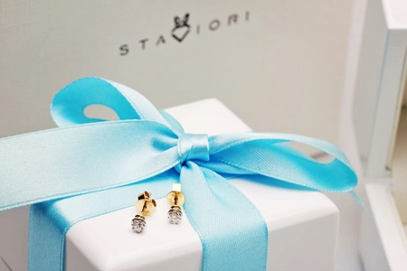 Staviori Kolczyki. 2 Diamenty, szlif brylantowy, masa 0,20 ct., barwa G, czystość SI1. Żółte, Białe Złoto 0,750. Średnica 4 mm. Grubość 4 mm. Dostępny z dowolnym innym Brylantem na indywidualne zamówienie.