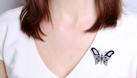 Dostępne Staviori Broszka. Markazyty. Onyks. Srebro rodowane 0,925. Wymiary 36x50 mm.