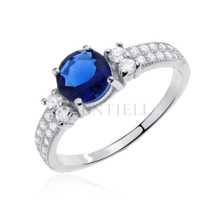 Srebrny pierścionek pr.925 cyrkonia biała i szafirowa