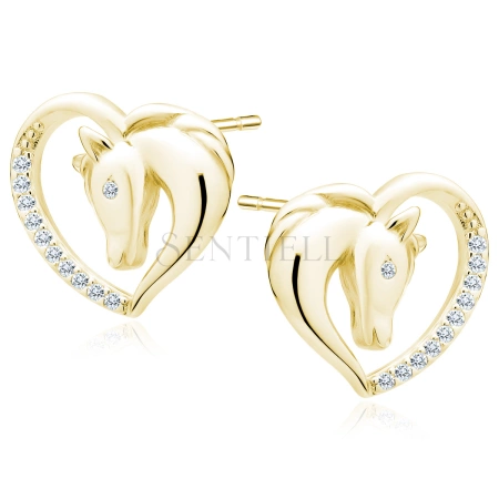 Srebrne pozłacane kolczyki pr.925 serce - koń z białymi cyrkoniami