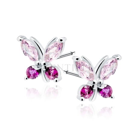 Srebrne kolczyki pr.925 motylek z różowymi cyrkoniami