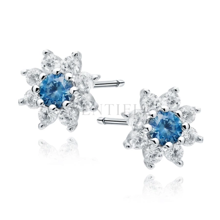 Srebrne kolczyki pr.925 kwiatek z szafirową cyrkonią