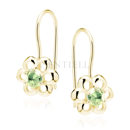 Srebrne pozłacane kolczyki pr 925 Cyrkonia zielona