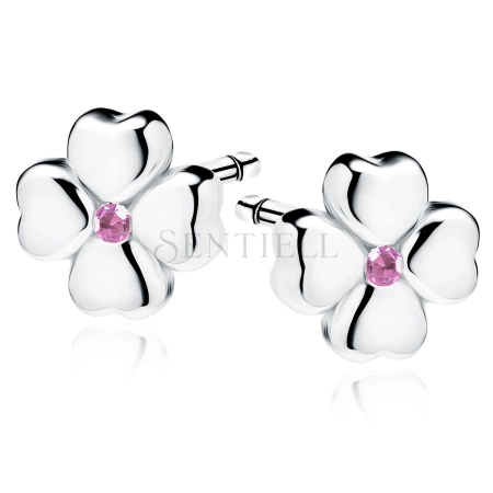 srebrne kolczyki pr.925 koniczynki z różową cyrkonią