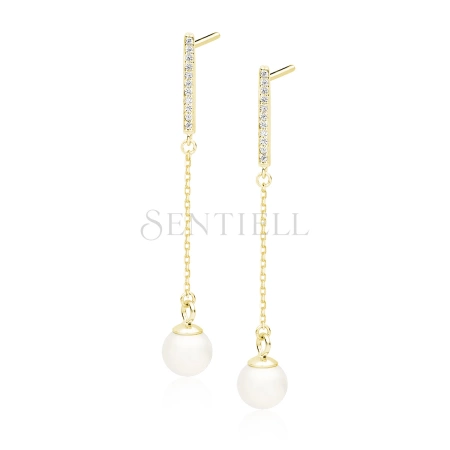 Srebrne pozłacane kolczyki pr. 925 perełki z białymi cyrkoniami