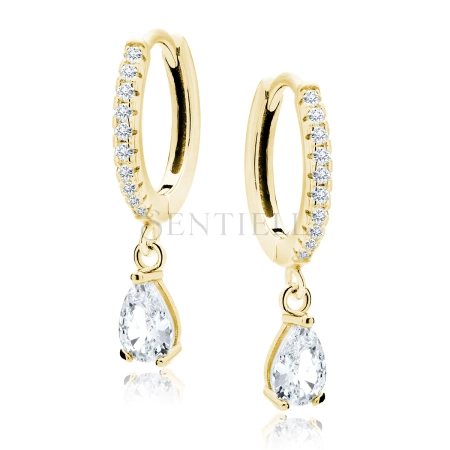 Srebrne pozłacane kolczyki pr.925 z białą cyrkonią - w kształcie łezki