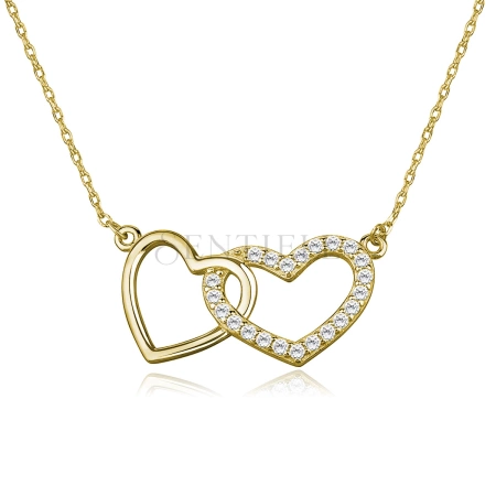 Srebrny naszyjnik pr.925 pozłacany - serduszka z cyrkoniami