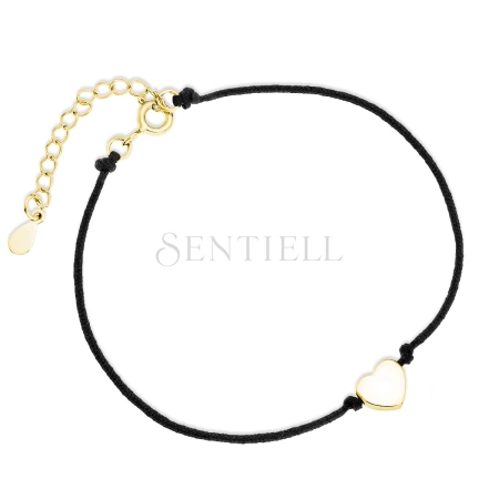 Srebrna pr.925 pozłacana bransoletka z czarnym sznurkiem - serce