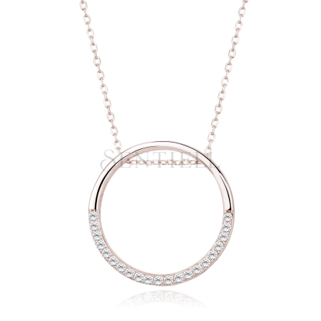 Srebrny naszyjnik pr.925 okrąg z cyrkoniami, różowe złoto