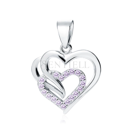Srebrna zawieszka pr. 925 potrójne serce z fioletowymi cyrkoniami
