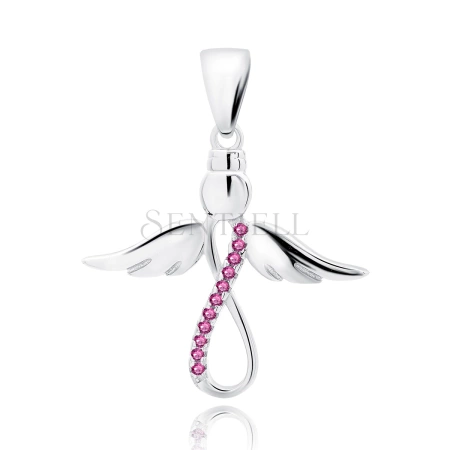 Srebrna zawieszka pr.925 anioł z rubinowymi cyrkoniami i znakiem nieskończoności