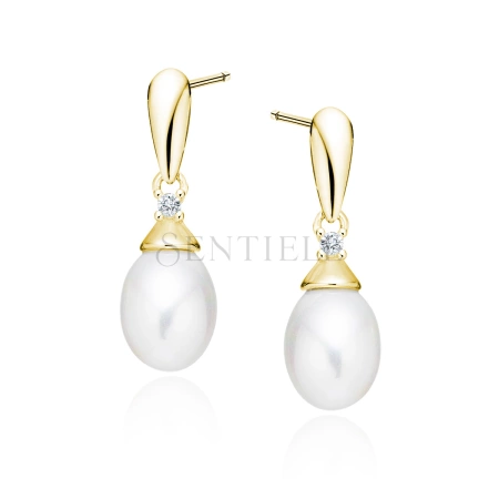 Srebrne pozłacane kolczyki pr. 925 perły z białą cyrkonią