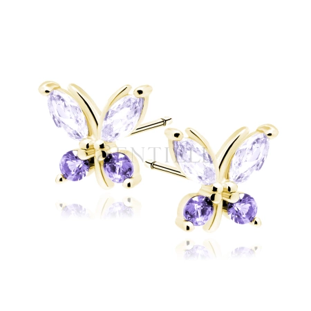 Srebrne pozłacane kolczyki pr.925 motylek z fioletowymi cyrkoniamii