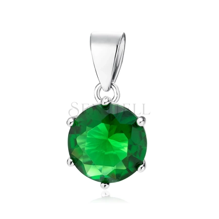 Zawieszka rodowana srebrna pr.925 zielona cyrkonia okrągła średnica 10mm