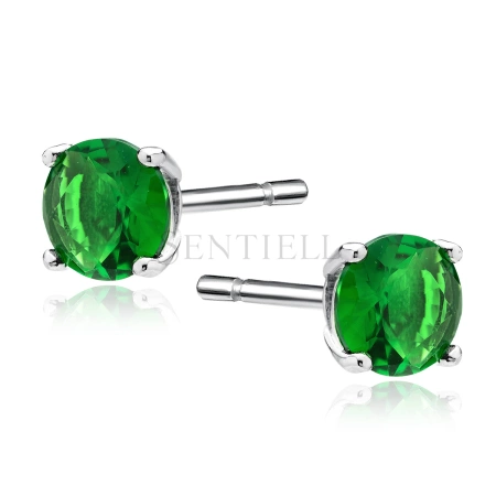 Srebrne rodowane kolczyki pr.925 zielona cyrkonia okrągła średnica 6mm