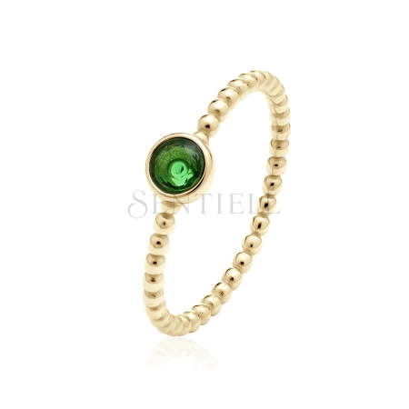 - Srebrny pr. 925 pozłacany pierścionek ze szmaragdową cyrkonią