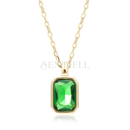 Srebrny pozłacany naszyjnik pr.925 ze szmaragdową cyrkonią