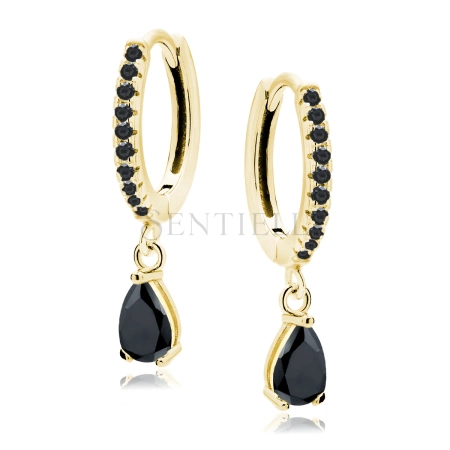 Srebrne pozłacane kolczyki pr.925 z czarną cyrkonią - w kształcie łezki