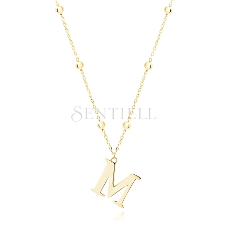 Srebrny pozłacany naszyjnik pr.925 literka M na łańcuszku z kuleczkami