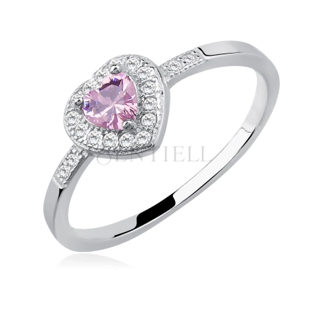 Srebrny pierścionek serduszko pr.925 z jasnoróżową cyrkonią
