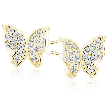 Srebrne pozłacane kolczyki pr.925 motyl z białymi cyrkoniami
