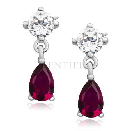 Srebrne pr.925 delikatne kolczyki z rubinową cyrkonią