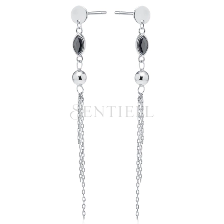 Srebrne kolczyki pr. 925 z czarną cyrkonią, kulką i łańcuszkami