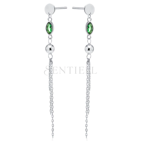 Srebrne kolczyki pr. 925 ze szmaragdową cyrkonią, kulką i łańcuszkami