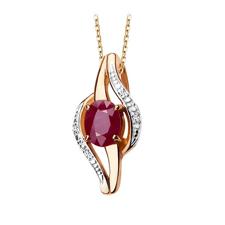 Dostępne Staviori Wisiorek. 4 Diamenty, szlif achtkant, masa 0,006 ct., barwa I-J, czystość SI1-SI2. 1 Rubin, masa 0,42 ct.. Żółte Złoto 0,333.