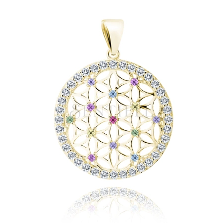 Srebrna pozłacana zawieszka pr.925 z kolorowymi cyrkoniami