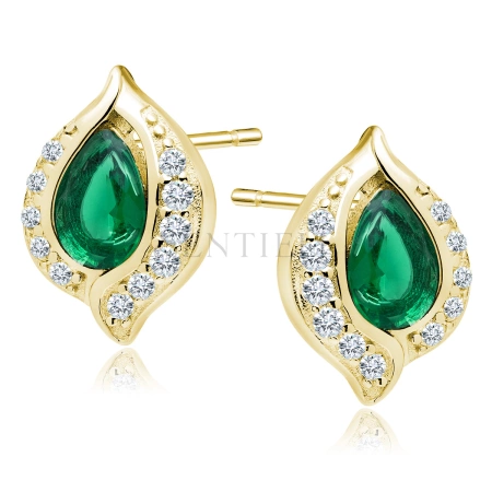 Srebrne, pozłacane, delikatne kolczyki pr.925 - szmaragdowa kropla w cyrkoniach