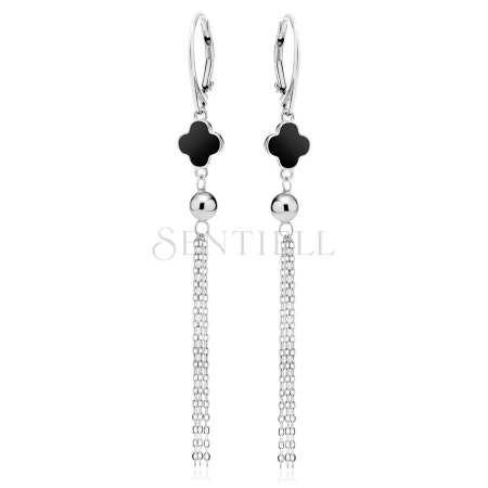 Srebrne pr.925 kolczyki z czarną emalią, kulką i łańcuszkami