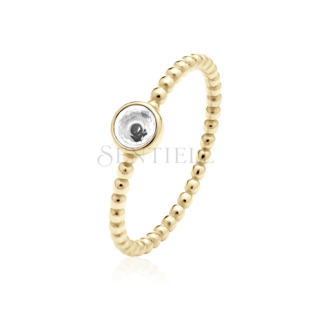 - Srebrny pr. 925 pozłacany pierścionek z białą cyrkonią