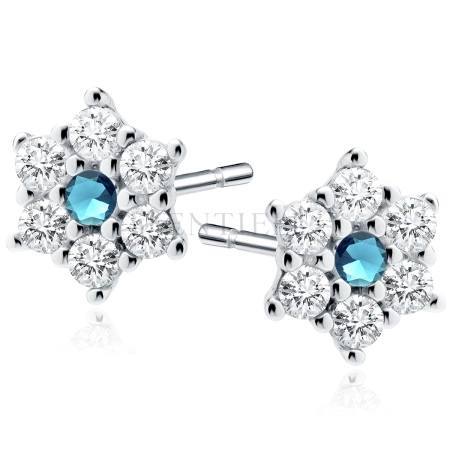 Srebrne kolczyki pr. 925 kwiatki z akwamarynową cyrkonią