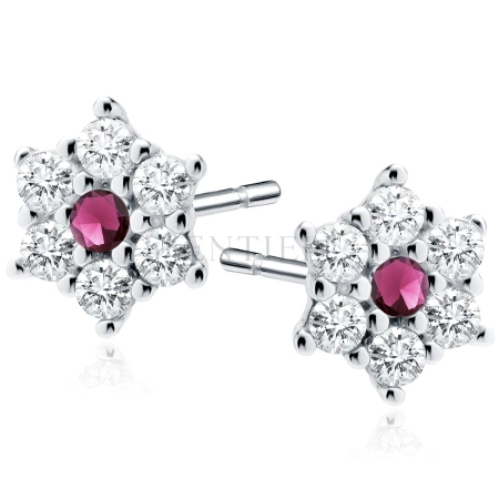 Srebrne kolczyki pr. 925 kwiatki z różową cyrkonią