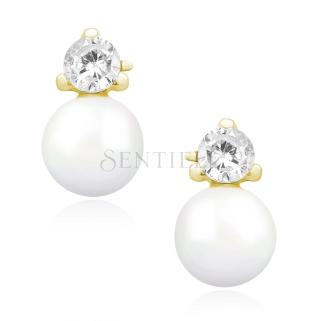 Srebrne pozłacane kolczyki pr. 925 perełki z białymi cyrkoniami