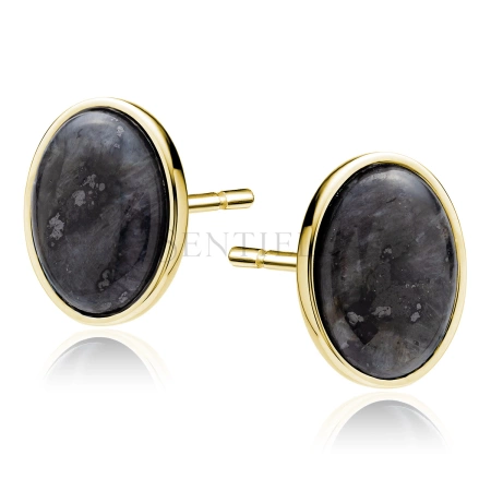 Srebrne pozłacane kolczyki pr.925 z czarnym larvikitem