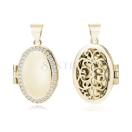 Srebrna pozłacana zawieszka pr.925 Otwierane owalne puzderko