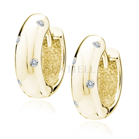 - Srebrne pozłacane kolczyki pr. 925 koła / kółeczka z białymi cyrkoniami