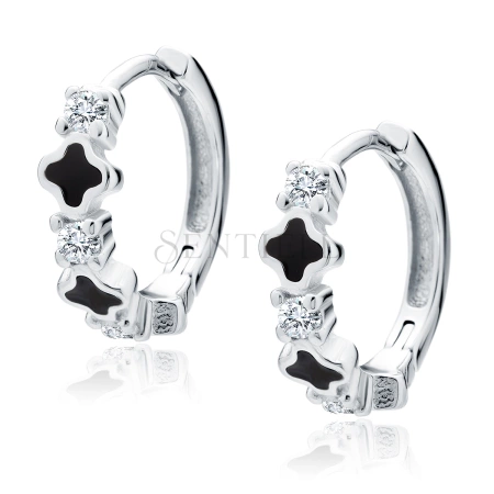 Srebrne kolczyki pr.925 kółka z białymi cyrkoniami i czarną emalią