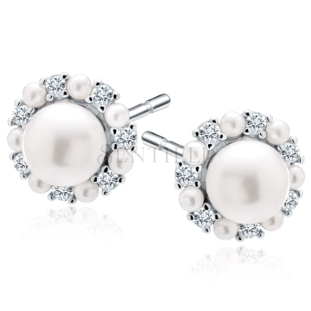Srebrne kolczyki pr. 925 perełki z białymi cyrkoniami