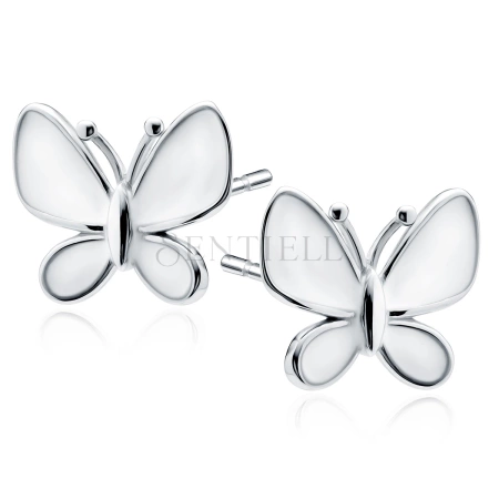 Srebrne kolczyki pr.925 białe emaliowane motylki