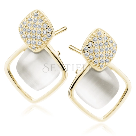 Srebrne pozłacane kolczyki pr.925 z białymi cyrkoniami i uleksytem