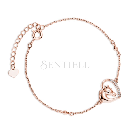 Srebrna pozłacana bransoletka pr.925 - koń z białymi cyrkoniami - różowe złoto