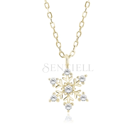 - Srebrny pozłacany naszyjnik pr. 925 śnieżynka z białymi cyrkoniami